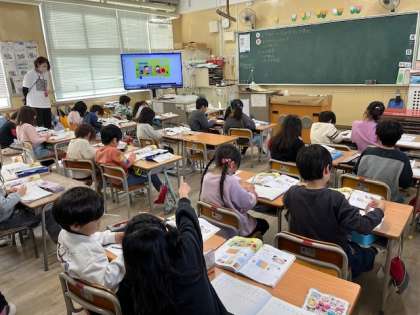 12月17日(火)3時間目、1年1組は算数で「ひろさくらべ」をしていました。