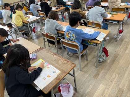 12月18日(水)1時間目、1年1組は書写でよこがきの書き方を練習していました。