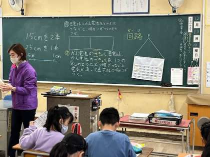 12月18日(水)1時間目、3年1組は理科で豆電球と乾電池をどのようにつなぐと明かりがつくかを実験していました。