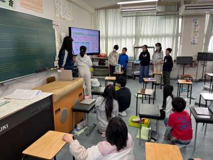 12月23日(月)1時間目、4年1組は音楽でリズムアンサンブルを班で作って、みんなの前で発表をしているところでした。