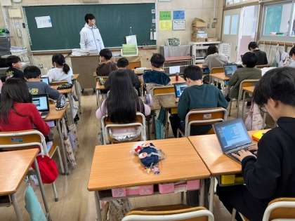 1月9日(木)3時間目、4年2組は係活動を決め、掲示物を作っていました。終わった人はデジタルドリルやキーボード入力の練習をしていました。
