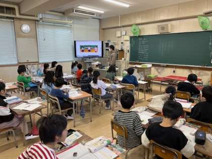 1月10日(金)1時間目、2年2組は算数で「長い長さ」について学習していました。30cmものさしでは測れない長さをどうして測るかを考えていました。