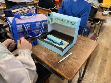 1月14日(火)2時間目、3年2組では作品展にむけての立体作品の製作をしていました。子どもたちは、一生懸命先生の説明を聞いて、良い作品にしようという意気込みが伝わってきました。