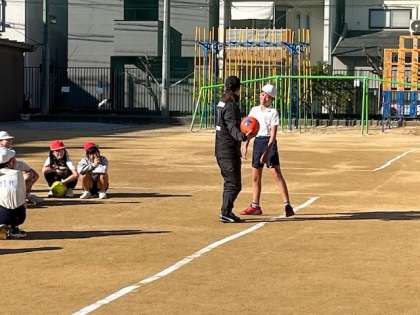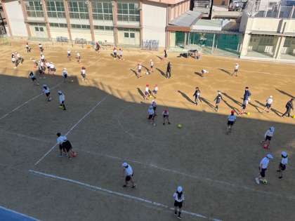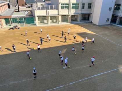 1月16日(木)2・3時間目、6年は夢授業でセレッソ大阪の方からサッカーについて教わりました。準備運動から楽しそうに体を動かしていました。