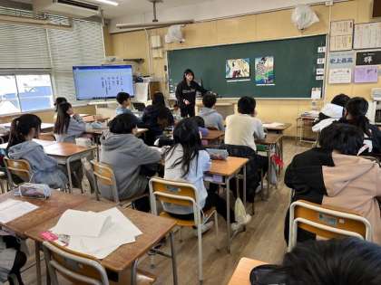 1月17日(金)1時間目、6年2組は絵につける名札を自分で書いていました。