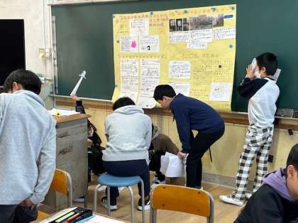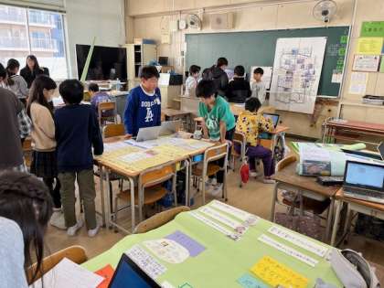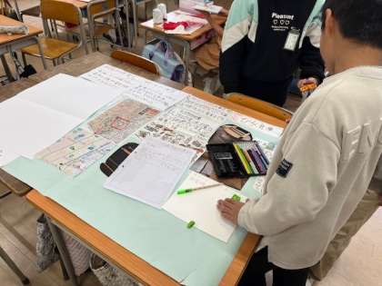 1月22日(水)3時間目、4年は3つに分かれて「防災」の発表の準備と練習をしていました。