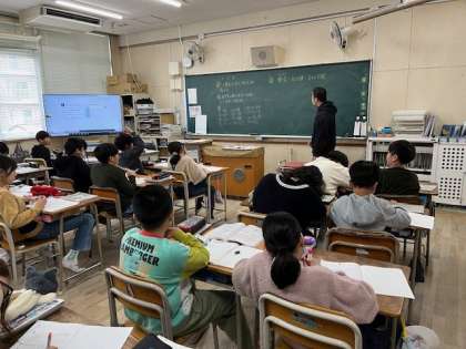 1月27日(月)4時間目、5年2組は算数で割合を求めるには比べる量÷もとにする量という難しい内容を学習していました。
