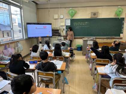 1月28日(火)1時間目、2年1組は算数で数の線のめもり注目して数の表し方を考えていました。