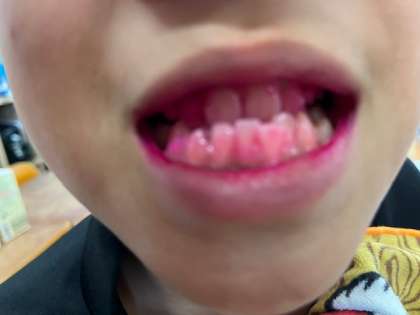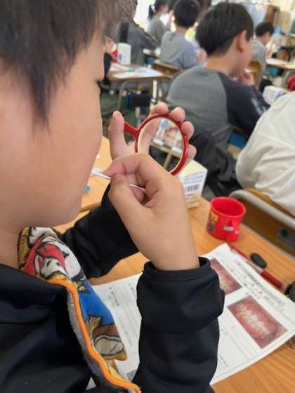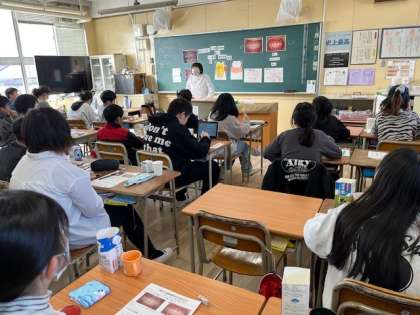 1月28日(火)2時間目、6年1組は歯と口の健康教室で歯垢が残っていないかを調べていました。毎朝磨いていると思いますが、果たして結果は?