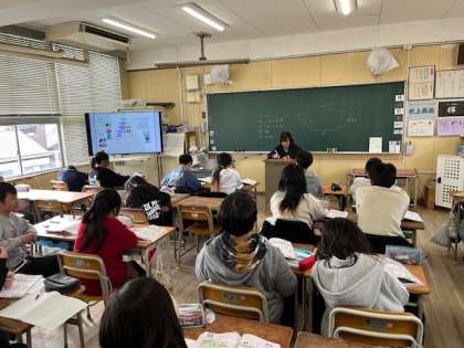 1月30日(木)5時間目、6年2組は算数で「ふしぎな数の三角形」を解いていました。