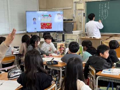 1月30日(木)5時間目、4年2組は国語で2枚のちらしを比べて自分なら、どちらを選ぶか考えていました。