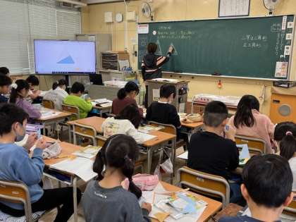 2月3日(月)1時間目、3年1組は算数で二等辺三角形と正三角形の特徴を角の大きさに注目して調べていました。