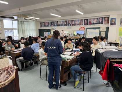 2月3日(月)1時間目、5年2組は音楽で手拍子でリズム打ちをしていました。
