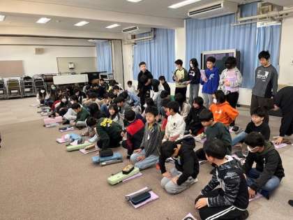 2月4日(火)4時間目、6年はふれあいルームに集まって合唱の並ぶ順を決めていました。