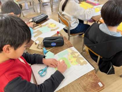 2月4日(火)5時間目、2年2組は図工で紙版画をつくっていました。