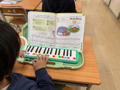 2月10日(月)5時間目、2年1組は音楽で「こぐまの二月」を鍵盤ハーモニカで練習していました。