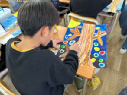 2月10日(月)5時間目、3年1組は図工で「モチモチの木」を描いていました。