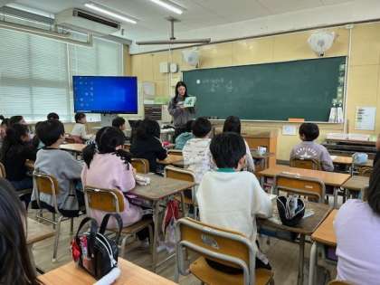 2月10日(月)5時間目、3年2組は先生に「介助犬ターシャ」の本を読んでもらっていました。