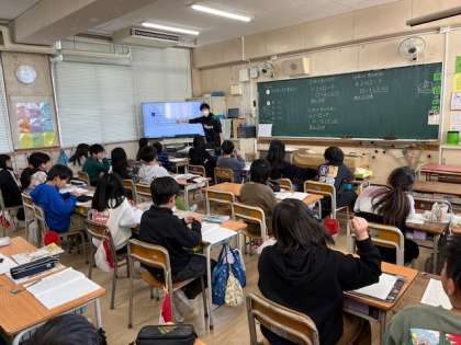2月10日(月)5時間目、4年1組は算数で倍の表し方を考えていました。