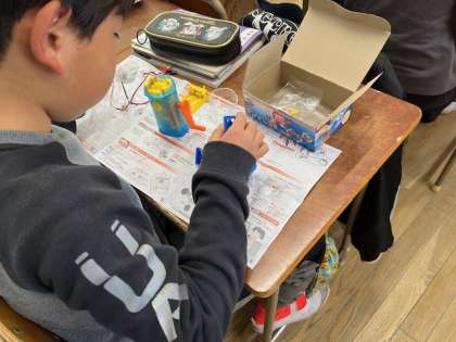 2月14日(金)1時間目、6年1組は理科で光電池を使って発電させる学習をしていました。光電池のキットを目の前にして子どもたちの楽しそうな顔を見ることができました。