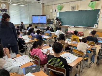 2月14日(金)4時間目、2年1組は算数で「わかって いるかな」の問題にチャレンジするところでした。