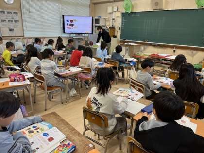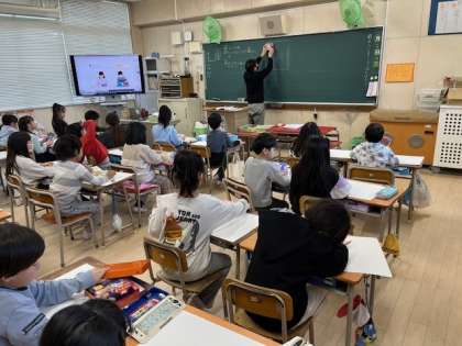 2月19日(水)1時間目、2年2組は算数で「はこの形」を学習していました。最初ははこの形を分類していました。授業後半に箱の面を画用紙に写し取っていました。写し取った面を組み立てるのでしょうか?
