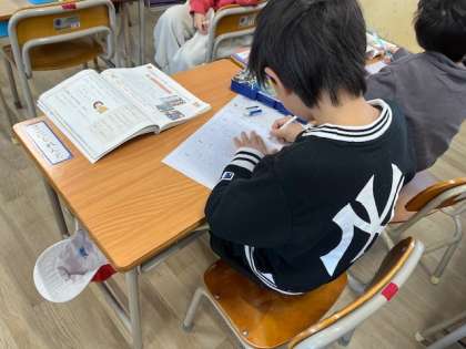 2月25日(火)1時間目、1年1組は国語で「小学校の ことを しょうかうしよう。」を学習していました。1年生になって何をしたかを思い出してワークシートに書いていました。