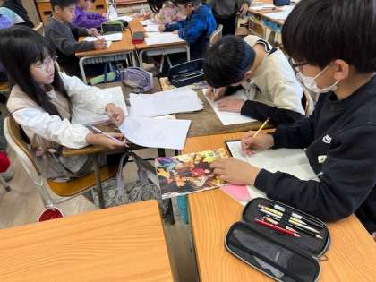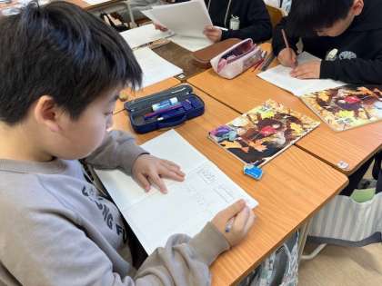 2月26日(水)1時間目、4年2組は国語でアンケートの結果を整理していました。算数か総合をしているのかと思いました。