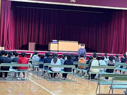 3月4日(火)3時間目、6年は講堂で卒業式の練習をしていました。