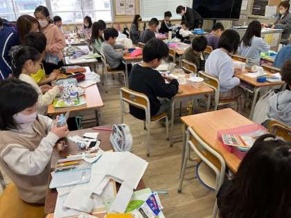 3月5日(水)1時間目、3年1組は理科でおもちゃを作っていました。