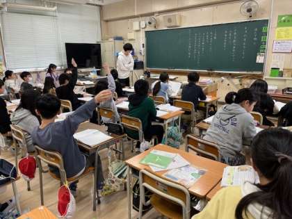 3月5日(水)1時間目、4年1組は道徳で「ネコの手ボランティア」を学習していました。