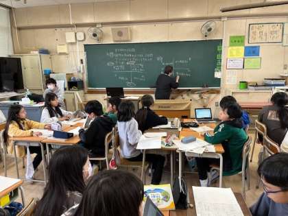 3月7日(金)5時間目、4年1組は理科で、動物や植物が1年間でどのような変化を見せるかを2次元の表に表して考えていました。