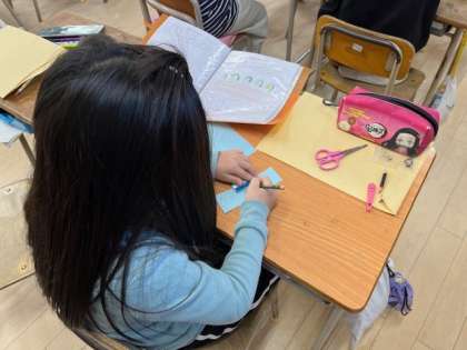 3月10日(月)1時間目、2年2組は生活科でこの一年の振り返りをすごろくや絵本にしていました。