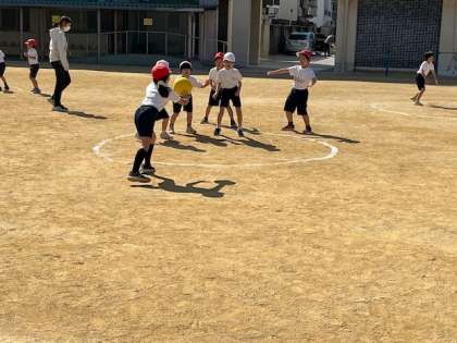 3月10日(月)2時間目、1年は体育でころがしドッジボールをしていました。入学した時よりも動きが速くなっているように思いました。