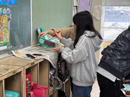 3月11日(火)1時間目、6年2組はまだできていないところの仕上げを各自がしていました。