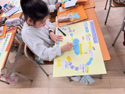3月13日(木)1時間目、2年1組は生活科で「せい長すごろく」や「せい長絵本」を作っていました。楽しそうなものができてきました。
