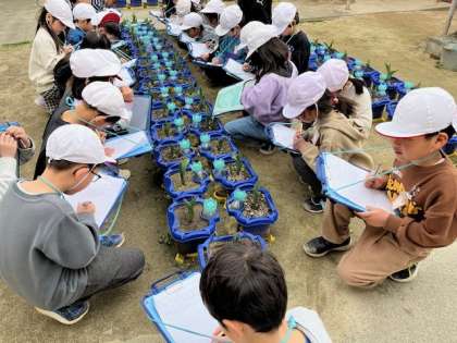 3月17日(月)4時間目、1年2組は生活科でチューリップの観察をしていました。「うわ、大きくなってる。」という声が聞こえてきました。新1年生の入学式には咲いているでしょうか。