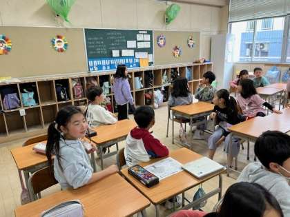 3月19日(水)1時間目、2年1組はお楽しみ会をしていました。ちょうど宝探しをしていました。