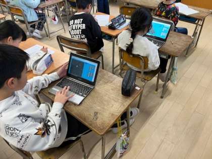 3月19日(水)1時間目、2年2組は算数で算数ドリルやプリントをどんどんしていました。終わった廣はパソコンで学習していました。