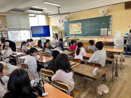3月21日(金)1時間目、3年2組はお手紙等を配っていました。