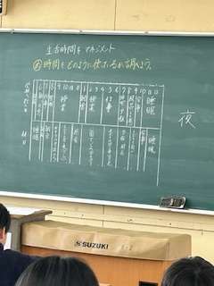 家庭科では、自分自身の生活時間を見直し、自分自身の時間のマネジメントをする学習をしていました。