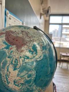 教室の後ろには、地球儀! 大陸の名前など世界の地形の学習に使います。