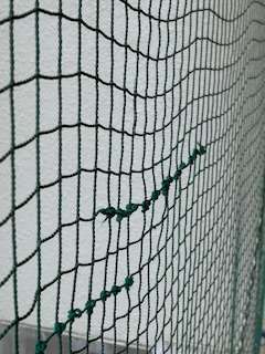 学校には、運動場から飛んでくるボールから守るための防球ネットをたくさん張ってあります。