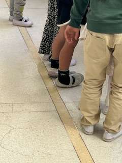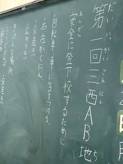 地区ごとに集まり、安全に登下校するための確認をしました。その後、並び方の練習もしました。