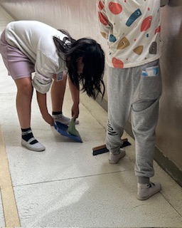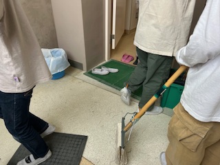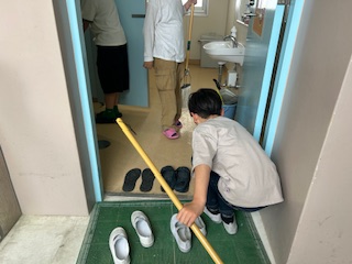 トイレや廊下。自分たちの使っている校舎を一生懸命掃除します。