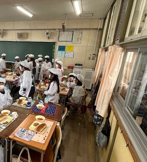 今日の献立は、とんかつ、ミネストローネ、パン、牛乳です!