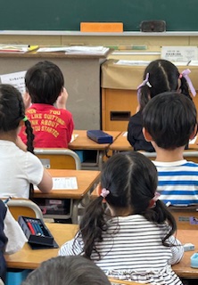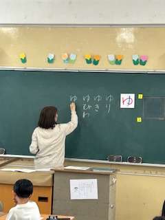 ひらがなの学習もひと月でずいぶん進みましたね。1組2組とも、今日は、ゆという文字を学習していました。