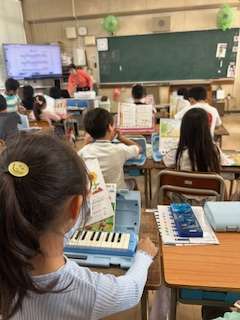 歌に合わせて、手や足でリズム打ちをします。さぁ、うまくリズムにのれるかな!