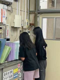 図書委員会の児童が、図書室の開放をお知らせしています。