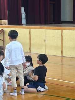 知っているお友だちの1年生がいたよ。楽しく学校の中をまわれよ。